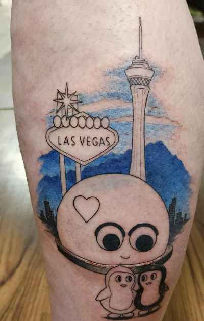 On Tuesday I went to get my Las Vegas tattoo. I have wanted to get a penguins tattoo but wasn’t sure how I wanted them. Then I thought of putting in my Las Vegas tattoo. I was there for 8 hours and still not done but I am in love with it!